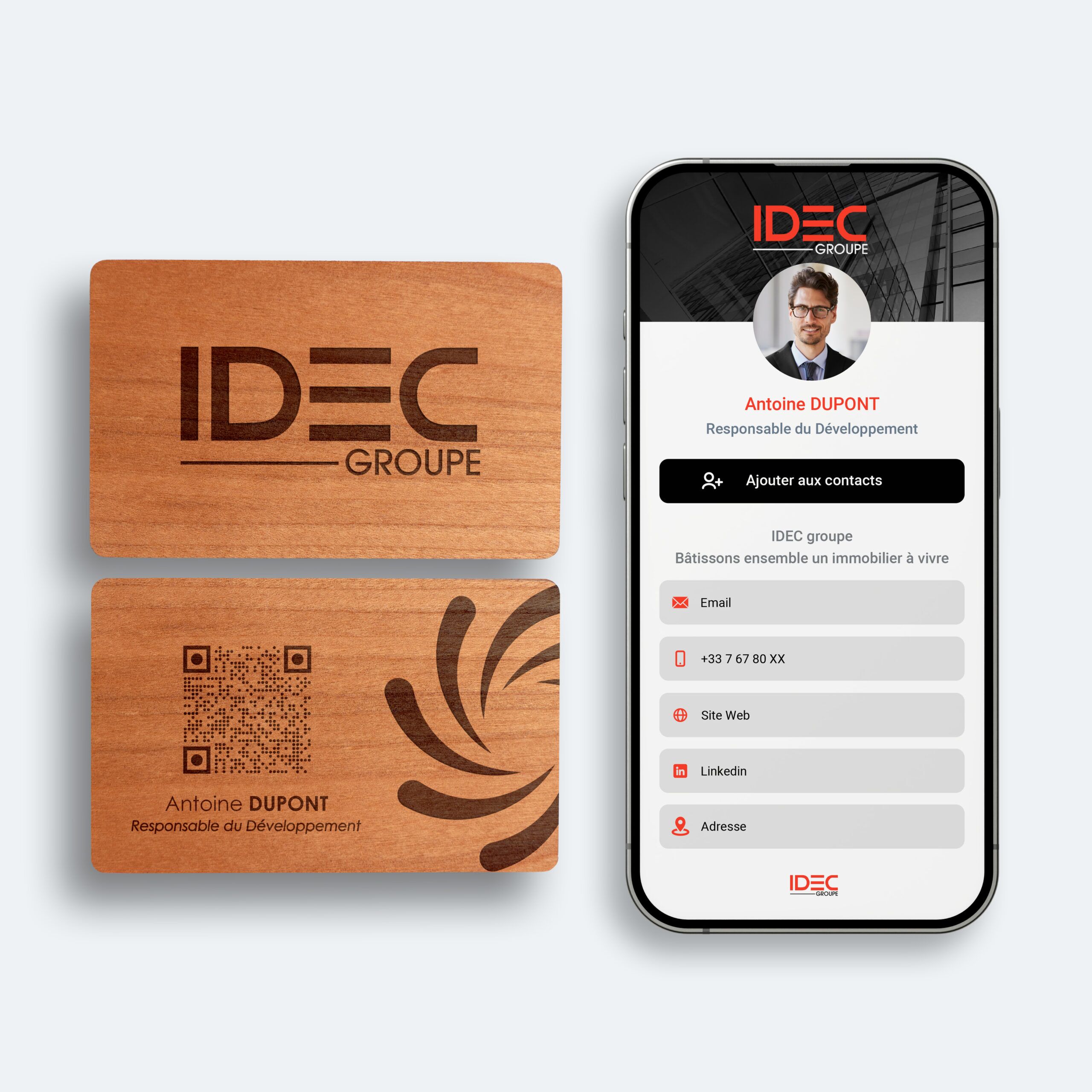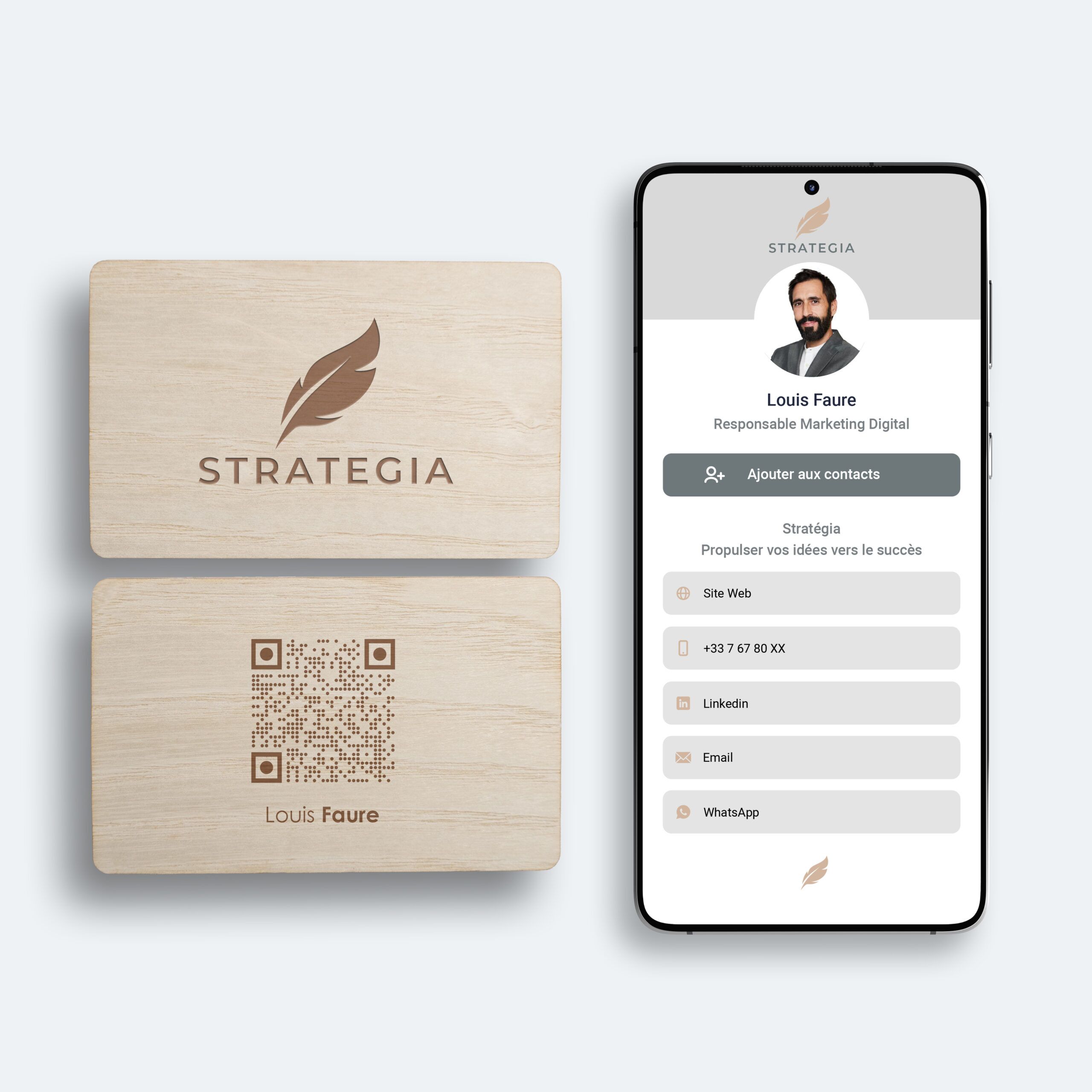 Chaque carte en bois est unique : les variations naturelles de couleur et de veinage garantissent que personne n’aura exactement la même. Associée à la technologie NFC intégrée, elle allie tradition artisanale et innovation moderne, offrant un objet à la fois pratique, durable et mémorable.