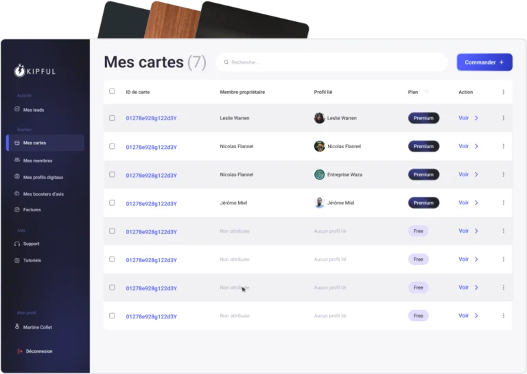 Gérez vos cartes et suivez les performances de votre équipe.