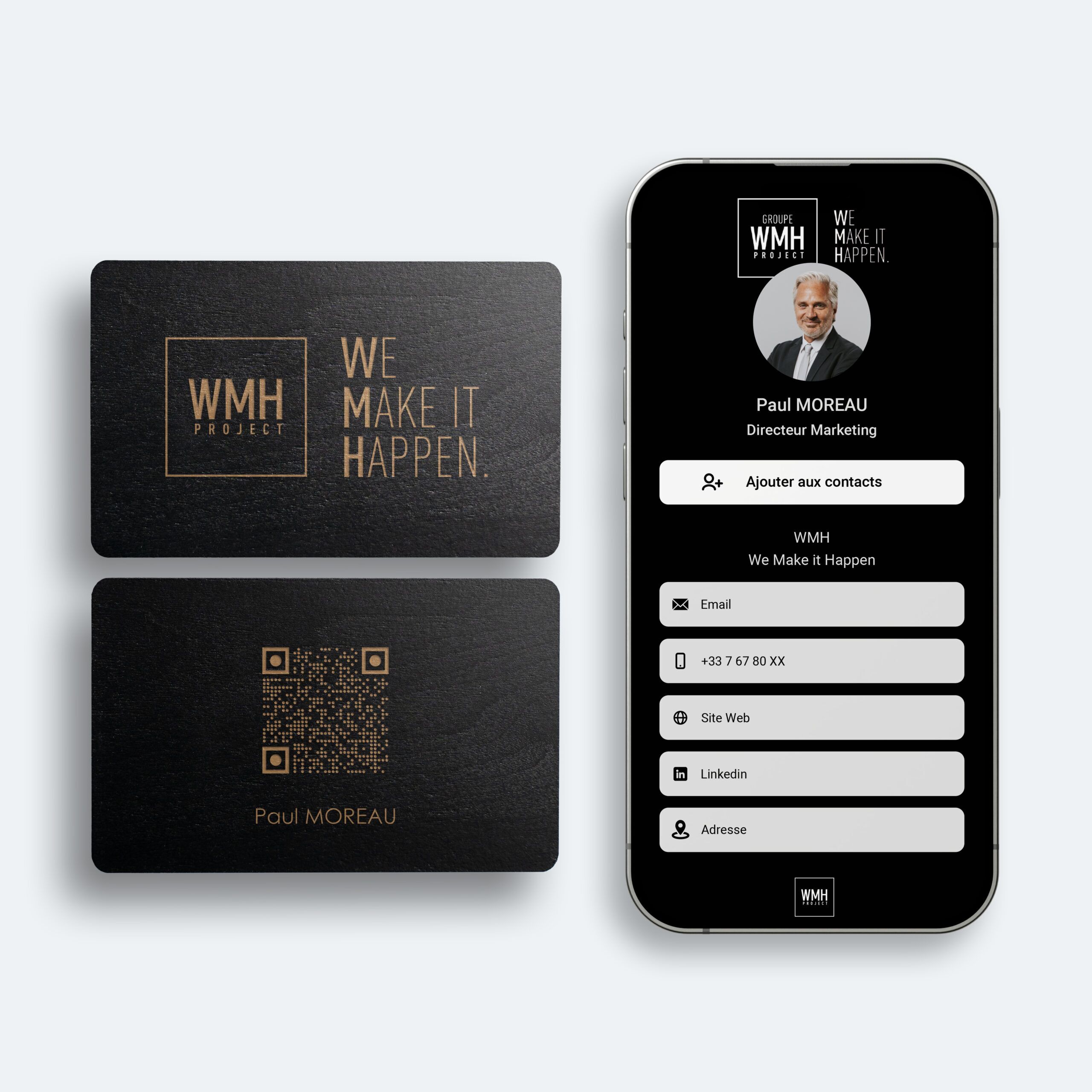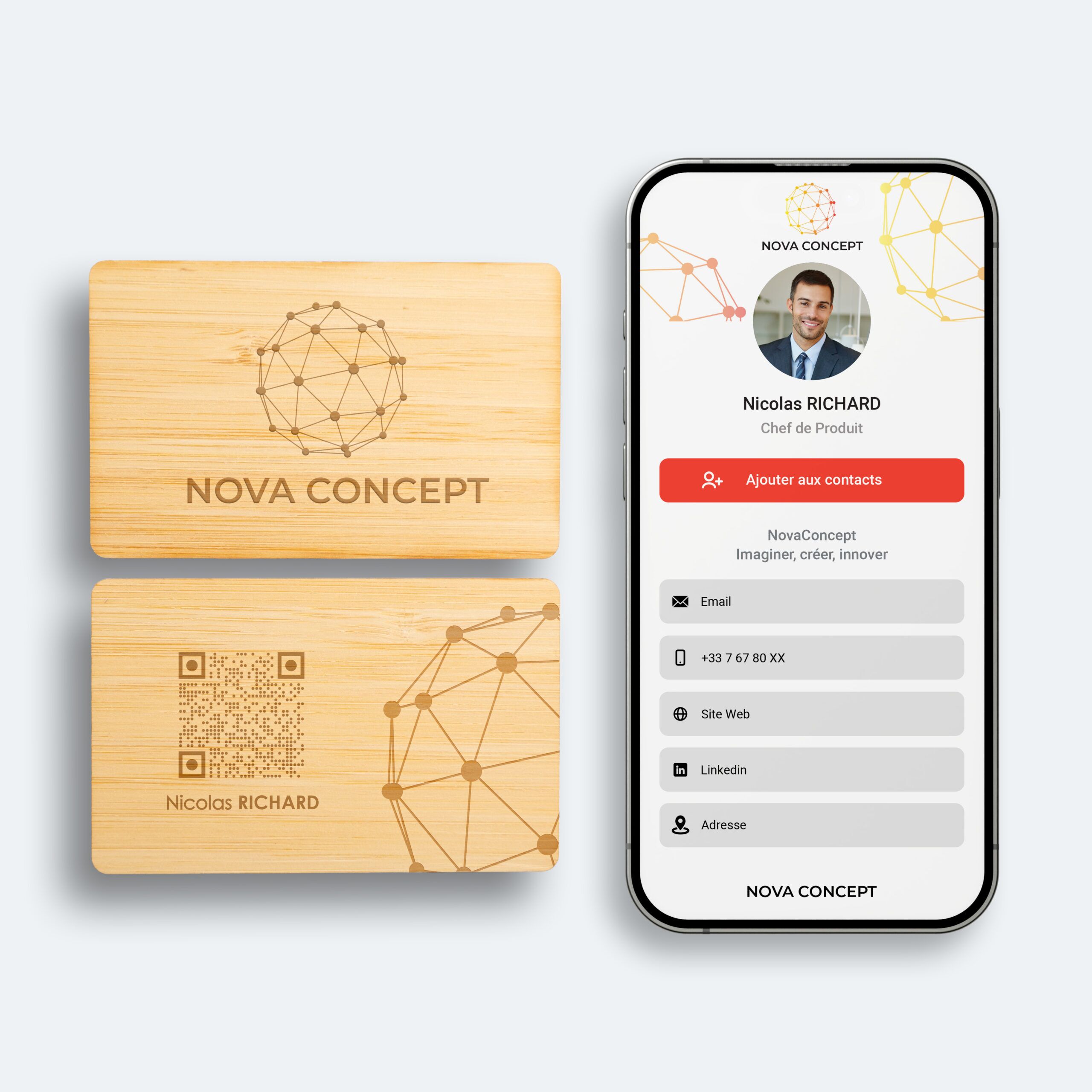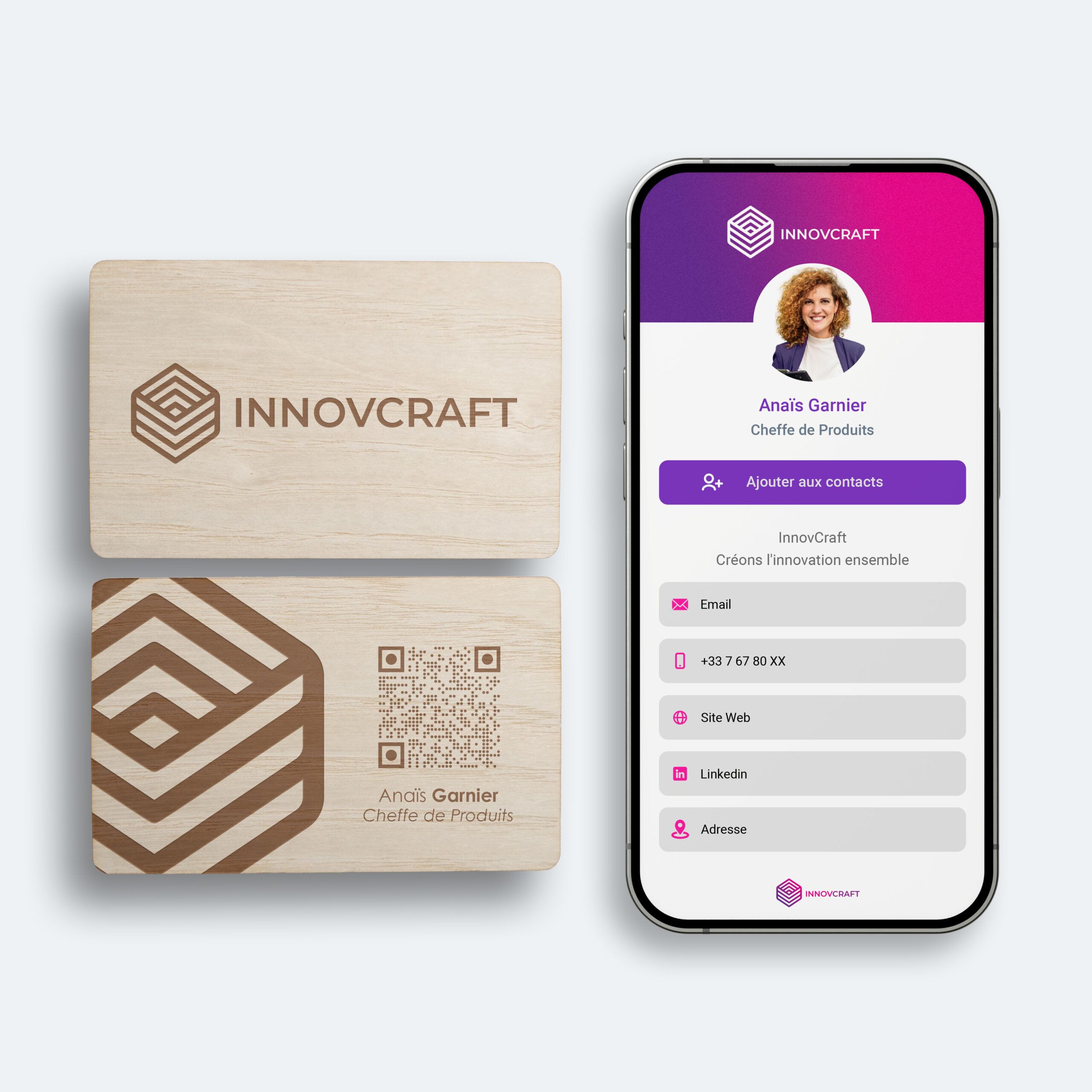 Chaque carte en bois est unique : les variations naturelles de couleur et de veinage garantissent que personne n’aura exactement la même. Associée à la technologie NFC intégrée, elle allie tradition artisanale et innovation moderne, offrant un objet à la fois pratique, durable et mémorable.